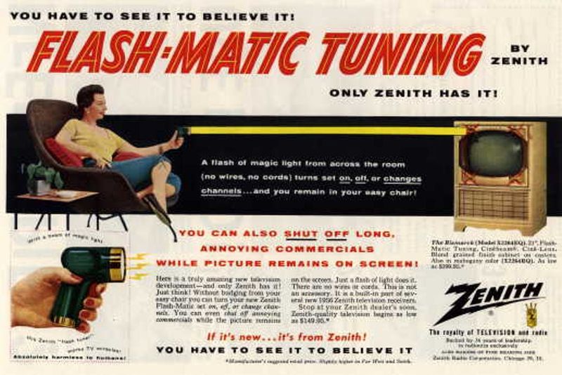 Before this, changing the channel meant getting off the couch—barbaric. The Zenith ‘Flash-Matic’ used a beam of light to flip channels, ushering in a new age of slothful bliss.